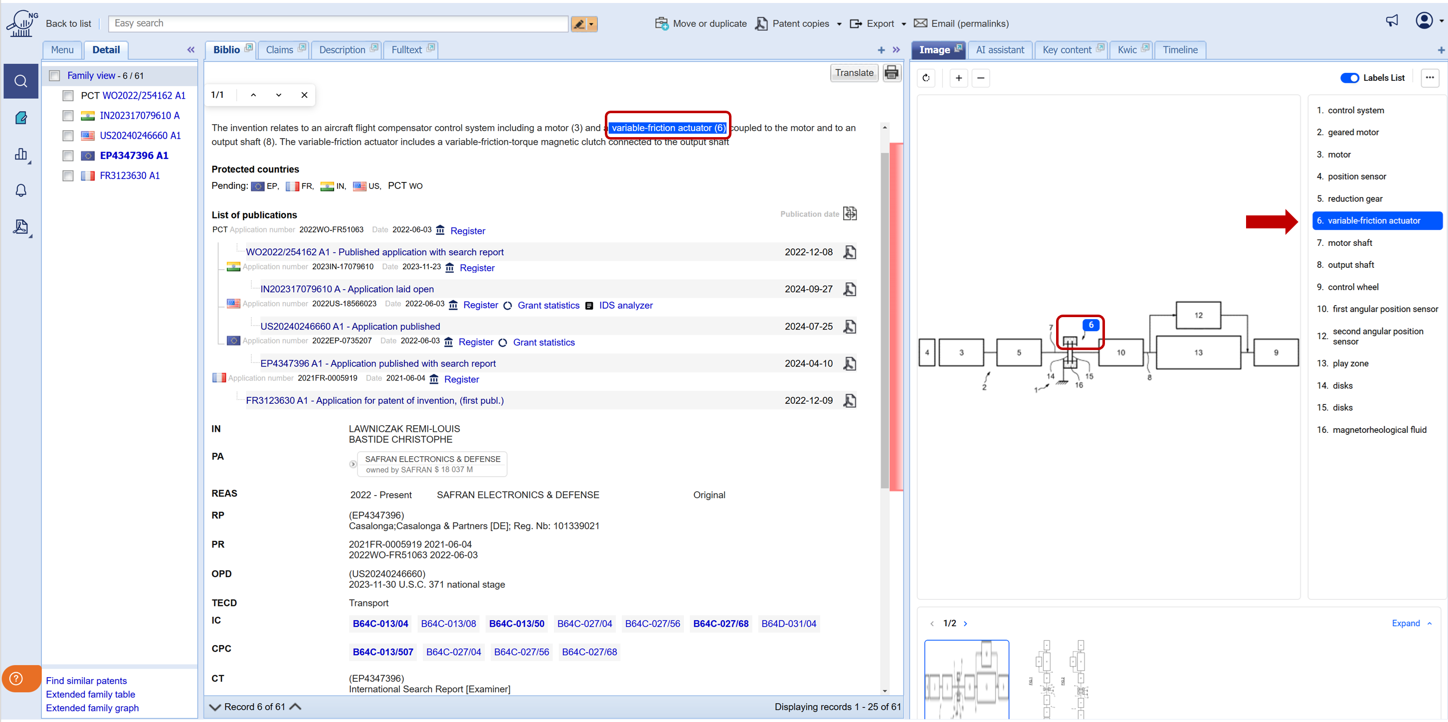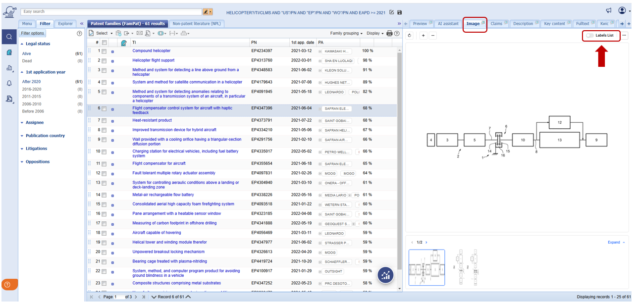 To better understand each label within its contextual framework, you can go to the Family View/Patent View mode by clicking on the record of interest: