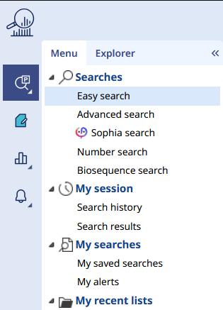 The first step is now to open the Search module (home page for most of users). You can check where you are, from the left-hand module bar.