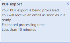 The export is processed in the background, and is delivered by email. A notification appears in the bottom‑right corner of your window displaying the estimated processing time.