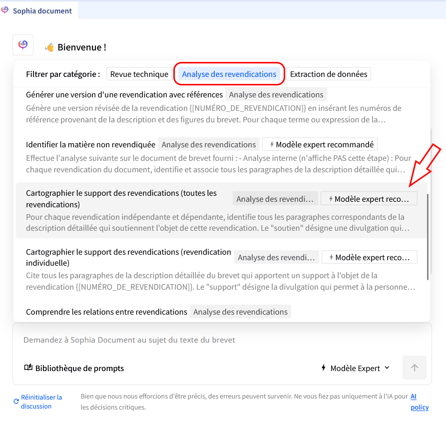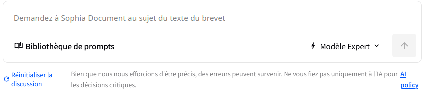 Sophia document est un outil d'IA interactif, permettant d'améliorer la compréhension et l'extraction des informations importantes d'un brevet. Vous pouvez interagir avec lui, via des questions en langage naturel, ou par des prompts, afin de réaliser de nombreuses tâches relatives à la lecture du document