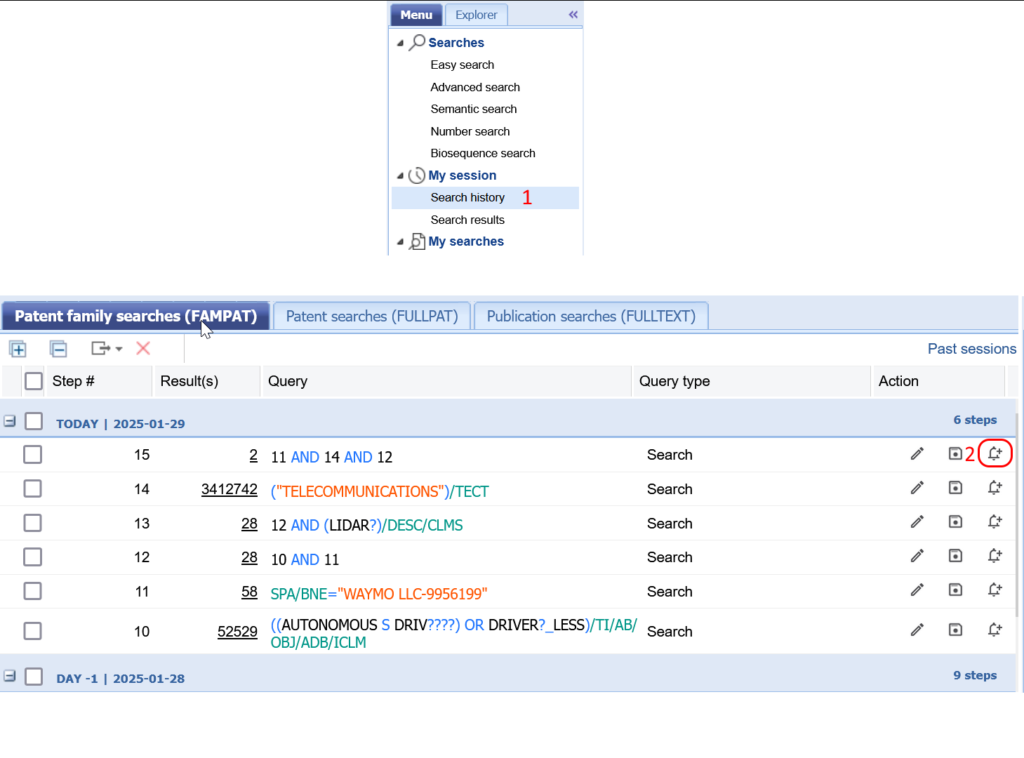 - Orbit Intelligenceの3つの特許コレクションのいずれかで検索式を一度実行する