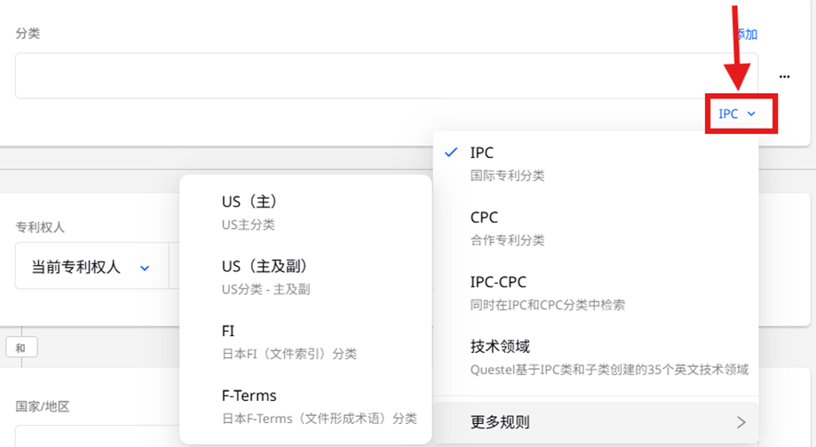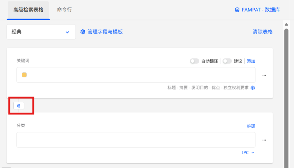 - 也可以使用 OR 逻辑组合 IPC 和 CPC 检索。请确保您的输入格式与两个系统中的代码匹配。